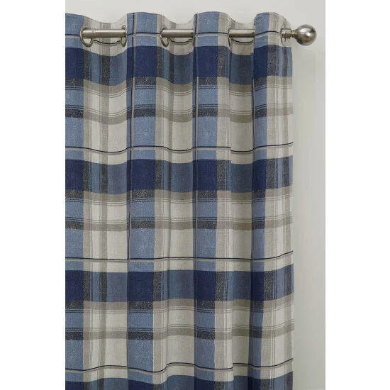 This cool, contemporary check design gives smart interiors an elegant edge – a touch of timeless style for fresh and friendly rooms. Manufactured from 100% cotton and lined with a 100% microfibre light-filtering lining, the curtains feature an eyelet heading for quick and simple hanging. Coordinating piped cushions complete the look.