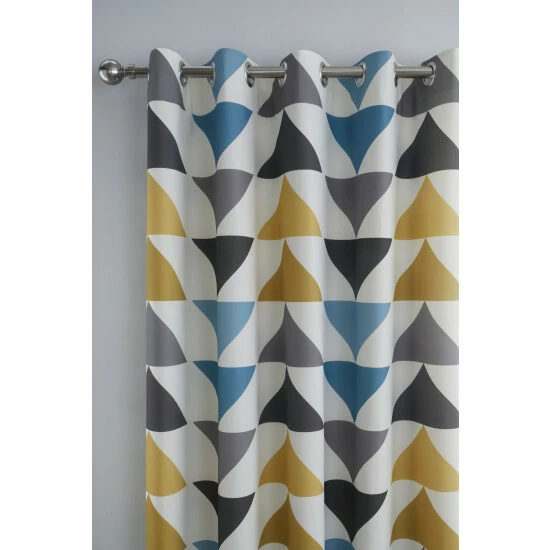 Simple shapes and warm colours combine to terrific effect, creating a bold statement for rooms that revel in contemporary style. The curtains are manufactured from 100% printed cotton, and are fully lined with eyelets for rail hanging.