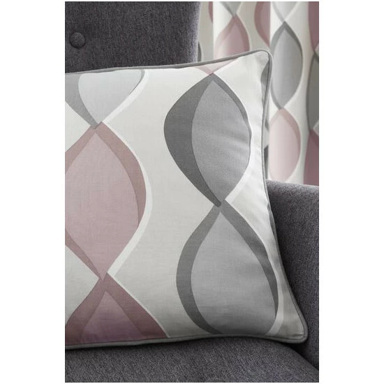 This season’s must-have colours are mixed in with a modern ogee vertical pattern for an eye-catching cushion design. Made from 100% cotton, Complementary curtains are also available.