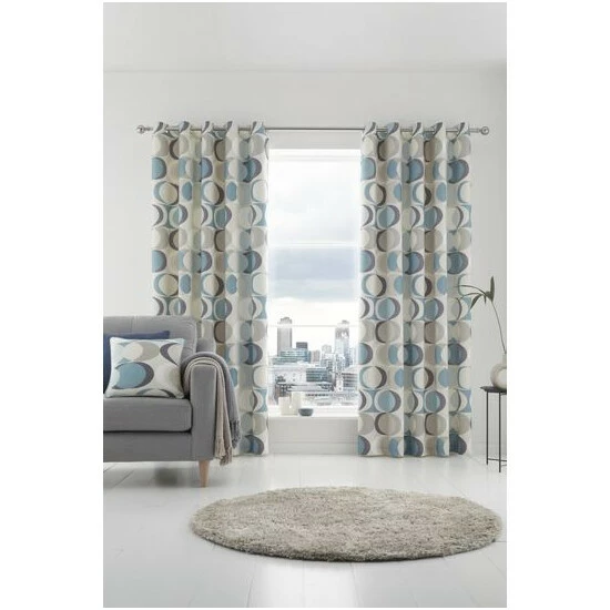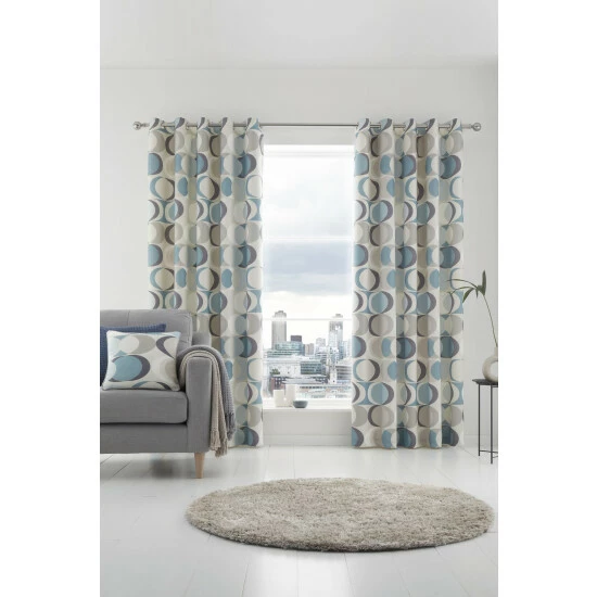 Offset circles abound in this fun screenprint-style design inspired by artwork and fashion of the 50s and 60s. The curtains are manufactured from 100% printed cotton, and are fully lined with eyelets for rail hanging.