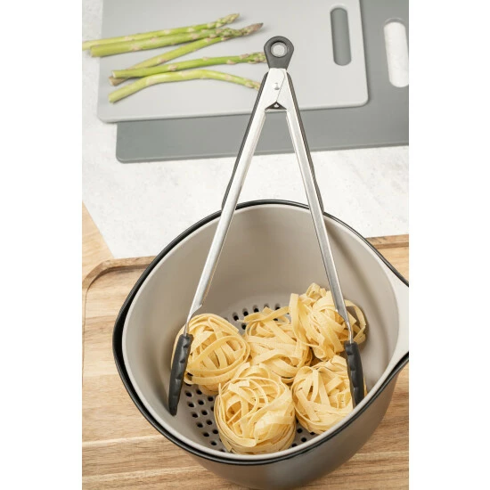 The Fusion range of Gadgets, are perfect for a variety of tasks in the kitchen from opening tins to cutting pizzas. Featuring a soft grip handles for a comfortable yet firm grip. The Set comprises of a Can Opener, Garlic Press, Pizza Cutter, Corkscrew and Stainless Steel tongs. the can opener comes complete with an integrated bottle opener, while the garlic press has a 360 handle to clean off any excess garlic. Complete with a 5 year guarantee, the Fusion range of gadgets are dishwasher safe.