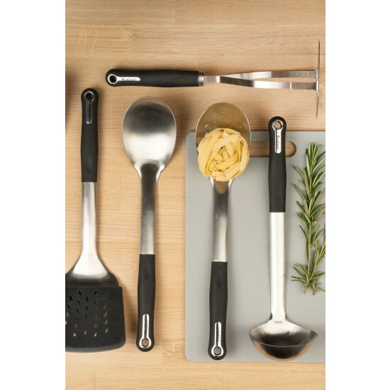 The Fusion Stainless Steel has a brushed finish and has an ergonomic handle for a firm and comfortable grip when in use. Each Item is built with additional features and benefits, such as integrated, pouring lip on the ladle, silicone over mould on the turner and measurements on the solid spoon. The Set comprises of a ladle, solid spoon, slotted spoon, slotted turner, slotted turner with silicone overmould and masher. Complete with a 5 year guarantee, the Fusion Stainless Steel Range is suitable for dishwasher cleaning for ease and convenience.